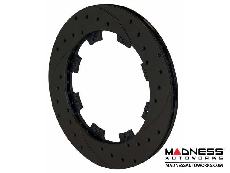 •   Two 2 Piece, Cross Drilled, Slotted and Vented Brake Rotors - 12"