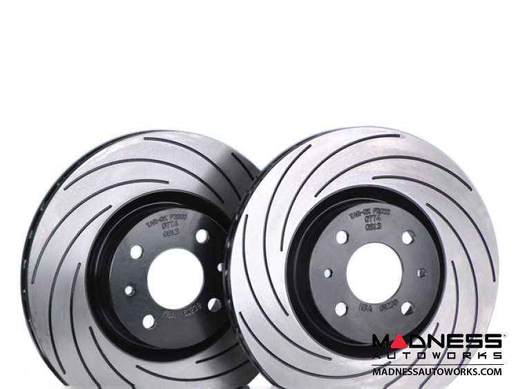 Tarox F2000 Brake Discs are designed for those who alternate the use of the car on the road with serious sessions on the track. The curved grooves deglaze the pads and allow the disc to run cooler.