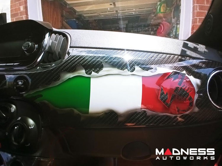 FIAT 500 Custom Dashboard - Carbon Fiber - Italian Flag w/ Black Scorpion