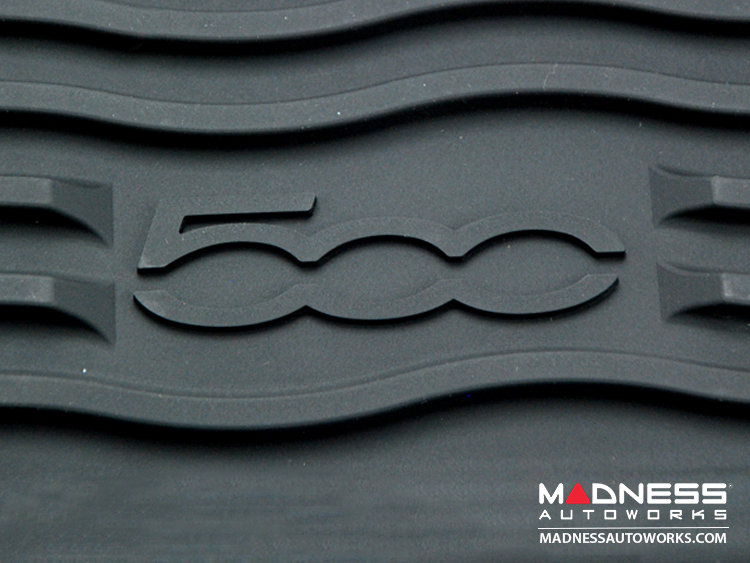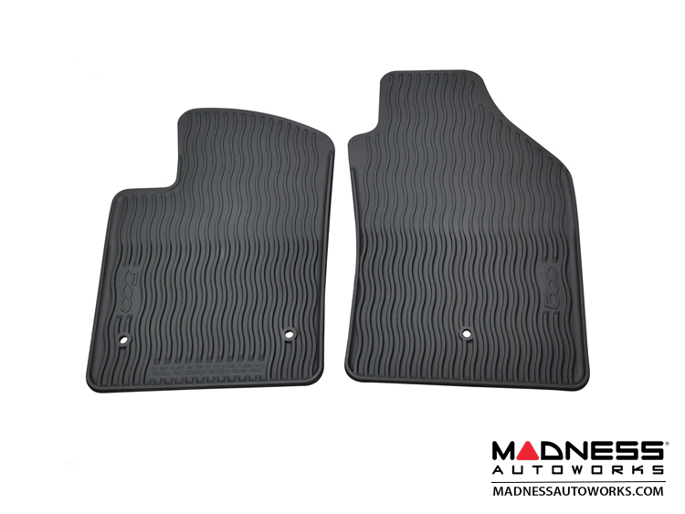 Protect the interior carpet of your FIAT 500 from Rain, Mud and other outside elements with this Genuine FIAT set of rubber/ All Weather Floor Mats.