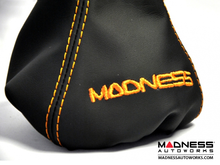 FIAT 500 Gear Shift Boot - Black Italy - Black Leather w/ Orange Stitching + MADNESS Logo