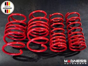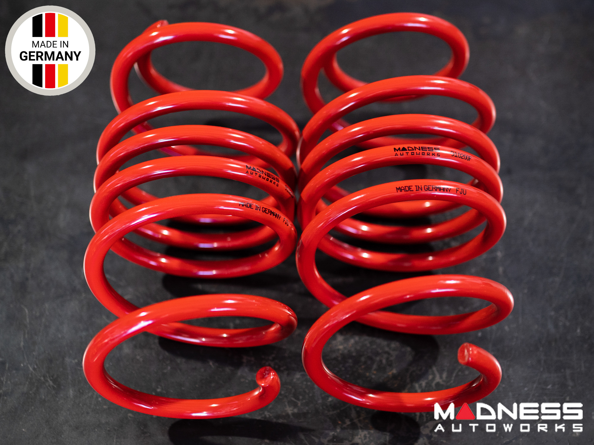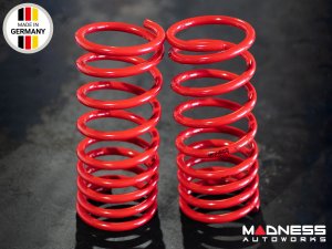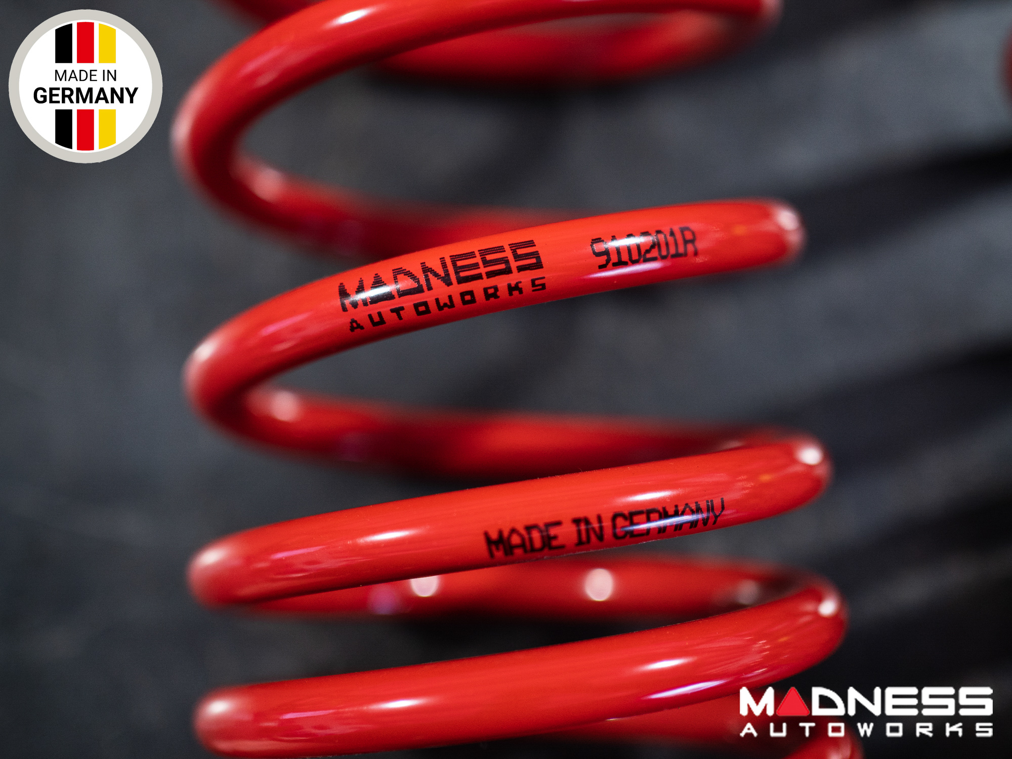 Developed in collaboration with our renowned European partners, these springs are engineered specifically for the North American FIAT 500. At MADNESS, we understand that one size doesn't fit all. That's why we've created two distinct versions of performance springs to meet the unique demands of FIAT 500 enthusiasts.