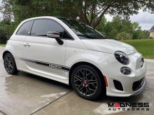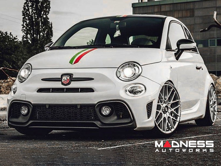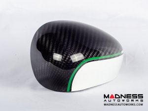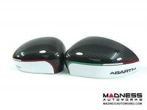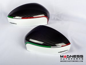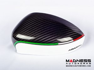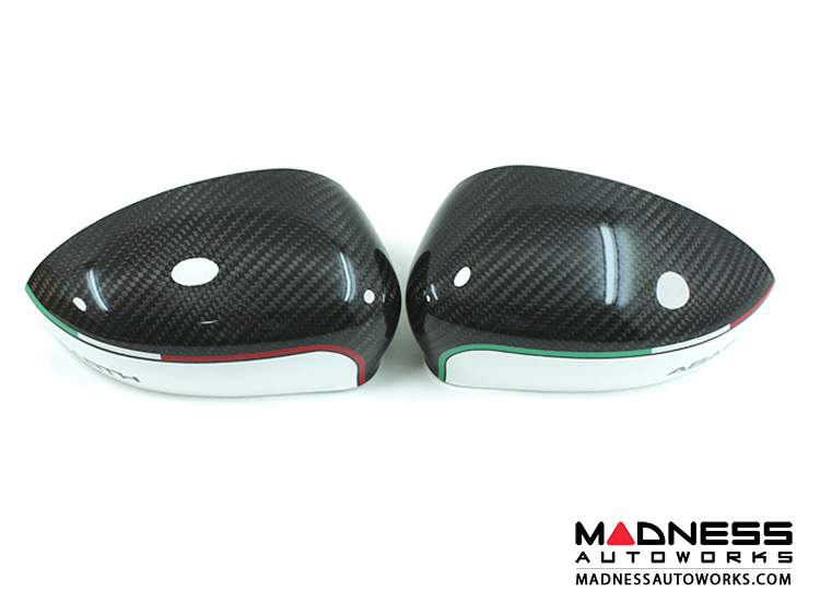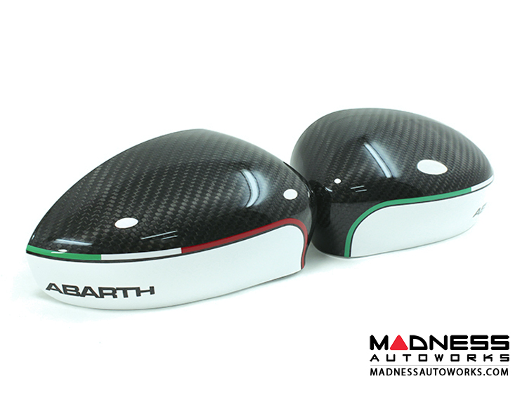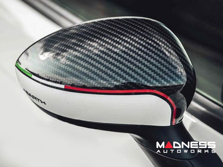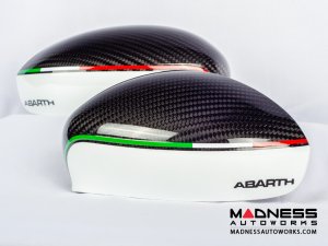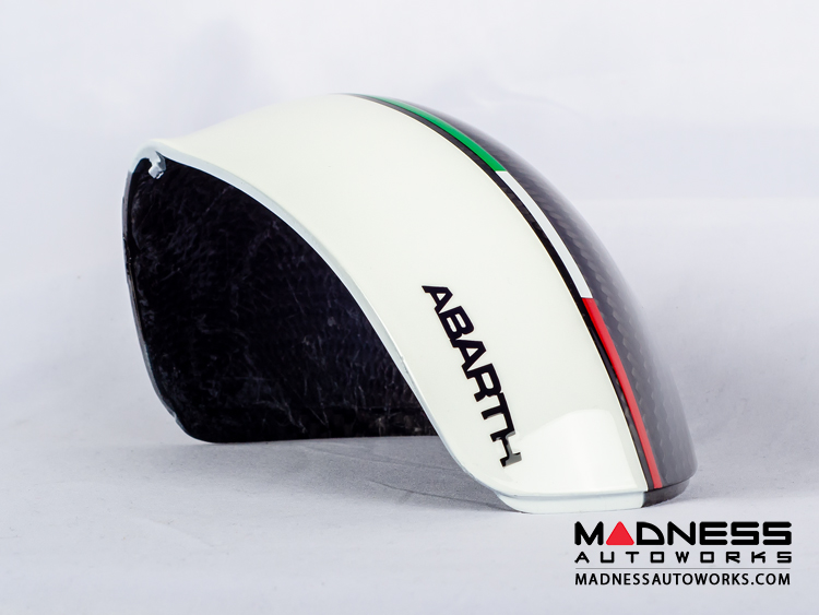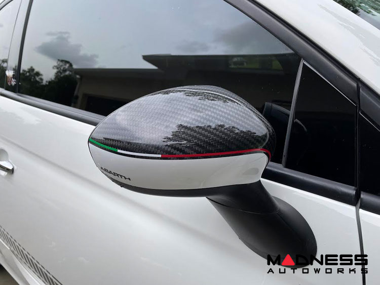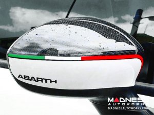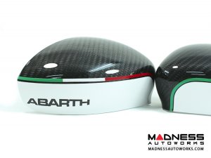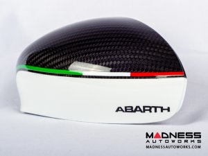 FIAT 500 Mirror Covers - Carbon Fiber - White w/ ABARTH + Italian Flag Design