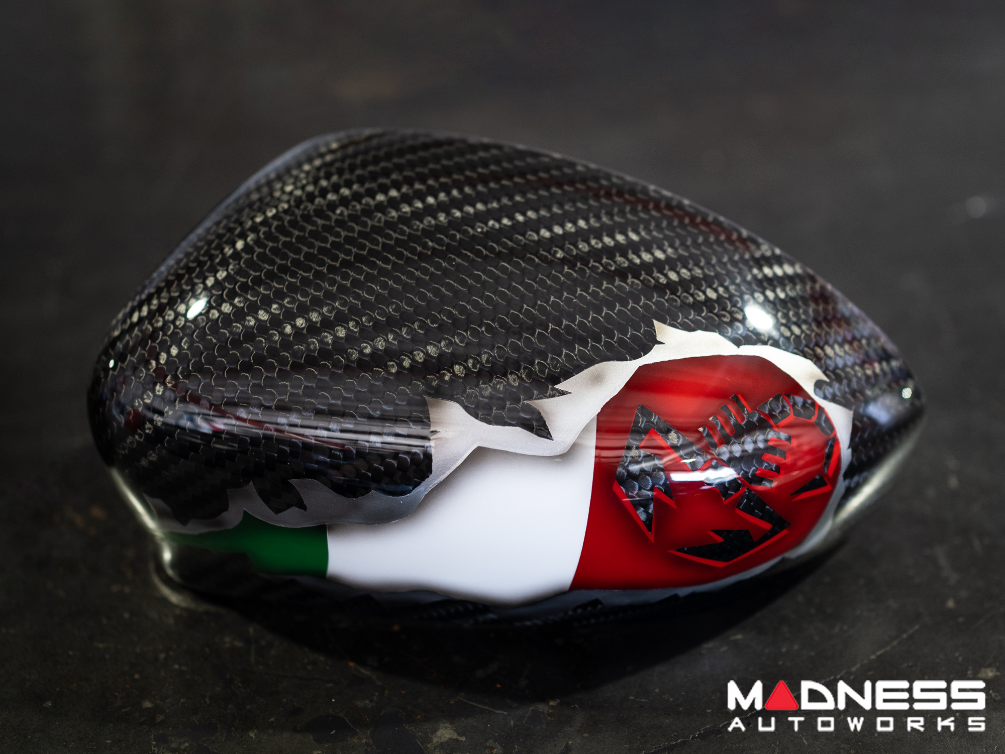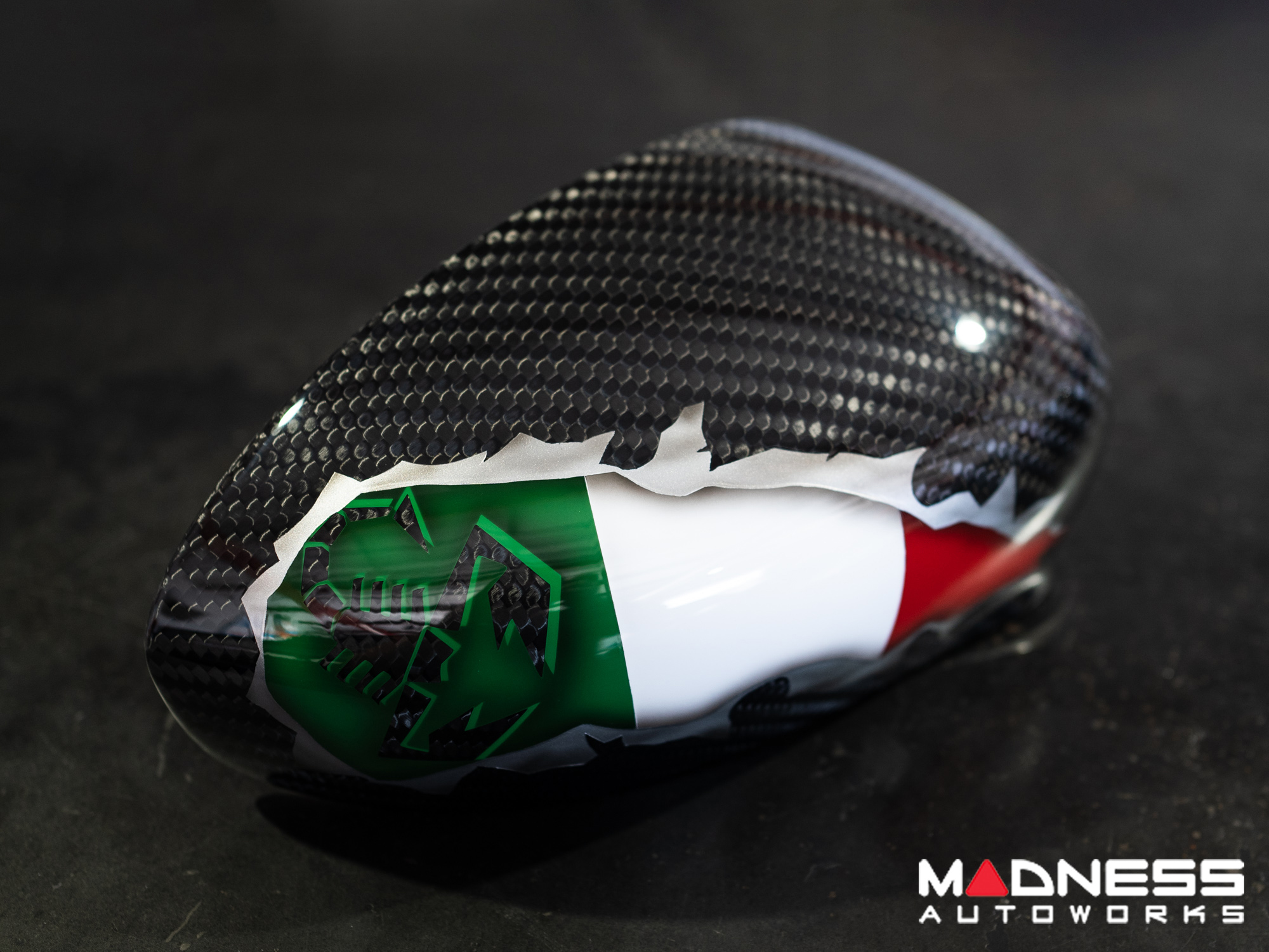 FIAT 500 Mirror Covers - Carbon Fiber - Italian Flag w/ Black Scorpion