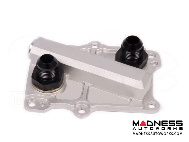 • CNC machined billet adaptor that replaces the oil to water cooling block
