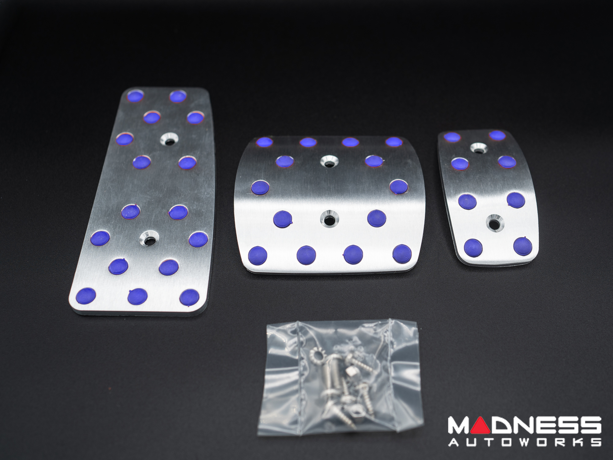 These pedals come in a high quality machined Aluminum Finish and come with Blue Rubber Grips for a nice detail. The Blue Rubber Grips can be easily removed if you like the "Drilled Out Look" instead.
