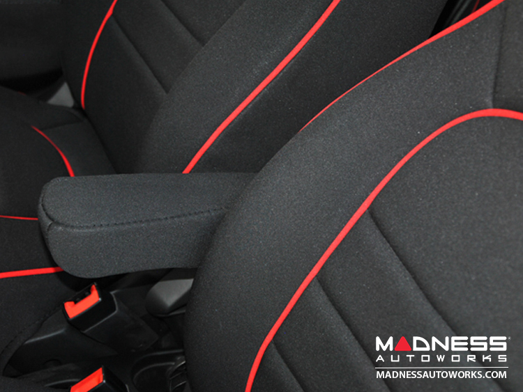 The seat covers come in all black and can be trimmed with full piping in a color to match your ABARTH. The seats pictured are done in Black with Red Piping. Please be sure to select the color you would like for your piping when checking out.