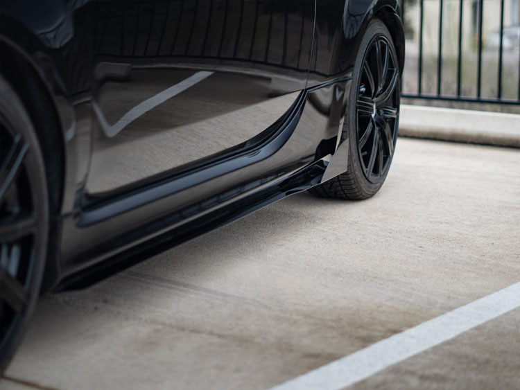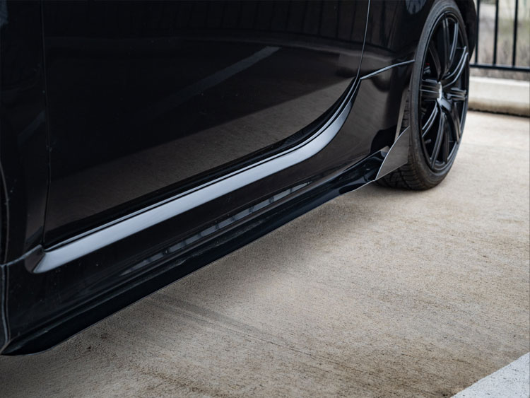 Improve down force and give your FIAT 500 an aggressive, race inspired look with these Custom Side Skirt Extensions.