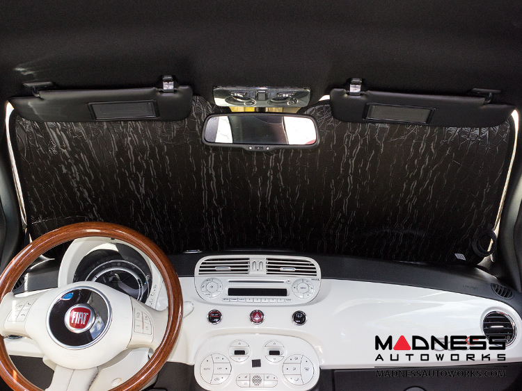 The Intro-Tech Automotive Custom Auto Shade is manufactured using a superior quality multi-layered material with a metalized outer film that reflects harming UV rays.