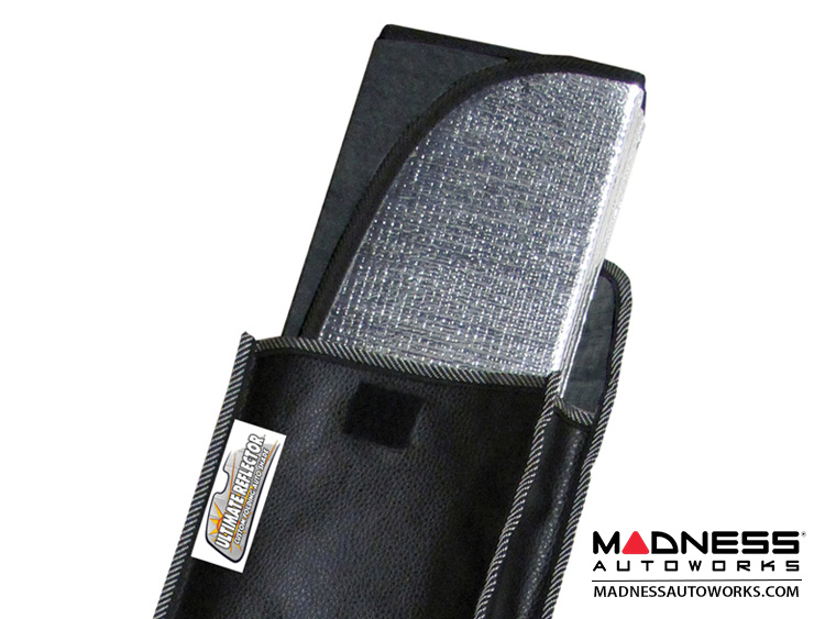 The Intro-Tech Automotive Ultimate Reflector™ Custom Folding Auto Shade is manufactured using a superior quality multi-layered material with a reflective mylar heat barrier that reflects harming UV rays.