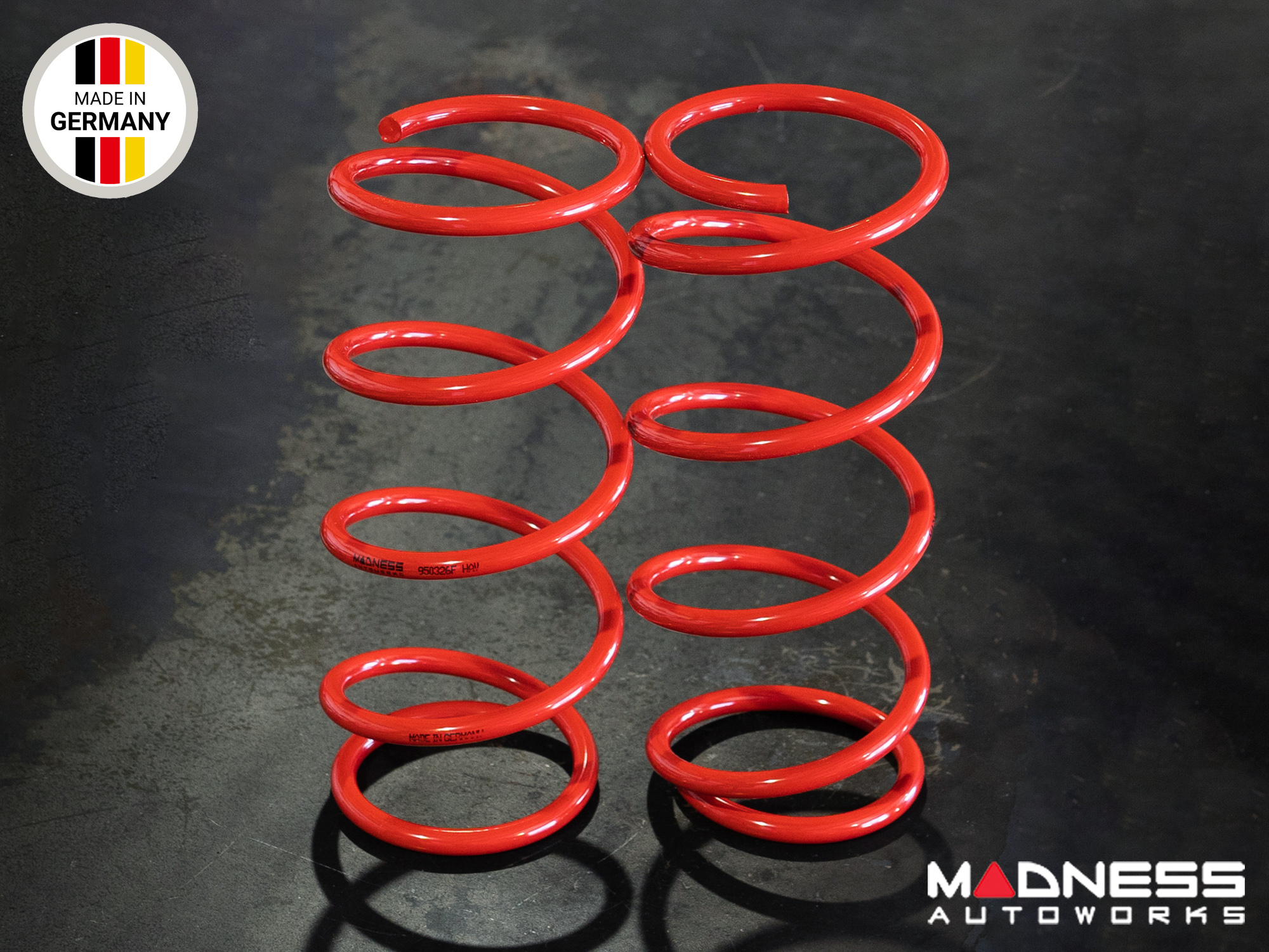 Our goal at MADNESS was to produce a line of performance springs that have been designed specifically for the FIAT 500X. We have been offering MADNESS Performance Springs for other select vehicles since 2009. We currently offer a number of custom lowering springs for other FIAT Vehicles and now have a set that is specific to the FIAT 500X.