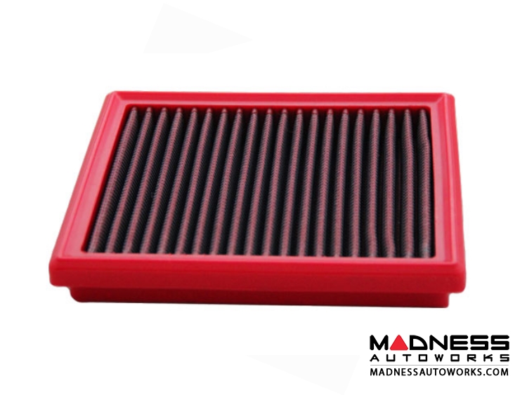The BMC panel air filter is commonly referred to as "replacement air filter". It is installed in the FIAT 500 original airbox to replace the OEM air filter. It is made of highly performing materials that allow an increased air flow combined with a more efficient filtration, guaranteeing containment of all impurities from as small as 7 microns (compared to OEM's 10 microns).