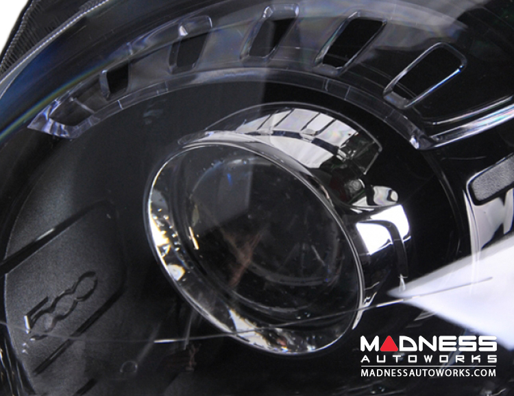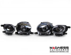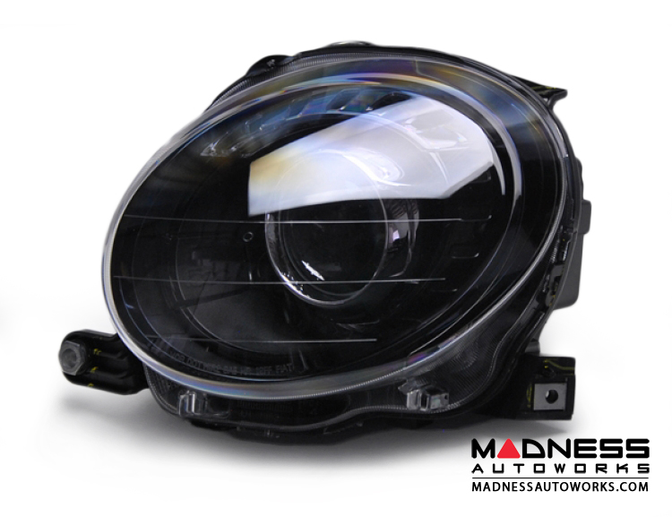This listing is for a set (Left and Right) Blacked Out Headlights and a set (Left and Right) of Driving Lights. The set is a Genuine FIAT item and is a direct replacement for all Turbocharged North American Versions of the FIAT 500. The lights will come complete with everything you need for a direct replacement.