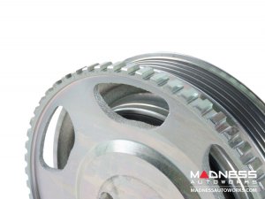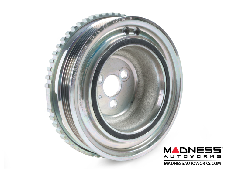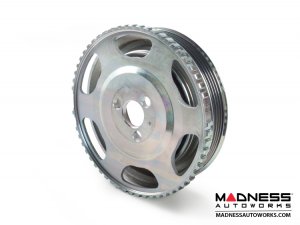 This pulley is the original pulley that comes standard on all North American FIAT 500 Models. This particular item is a "Take Off" Part. It was removed from a low mileage FIAT 500 Vehicle at our shop when the customer upgraded their car with our Lightweight MADNESS Pulley.