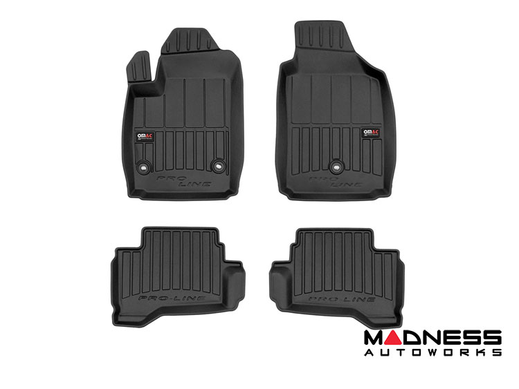These Pro-Line floor liners for the new FIAT 500e (Gen1) offer excellent protection for your vehicle's interior. Designed specifically for the FIAT 500e (Gen1), these OMAC Pro-Line car floor mats feature a nearly 3-inch thickness to withstand various weather conditions, including rain and snow. They're also easy to clean, maintaining their shape and ensuring your FIAT 500e stays in great condition. These premium-quality OMAC Pro-Line car floor mats are eco-friendly, making them an ideal choice for your FIAT 500e.