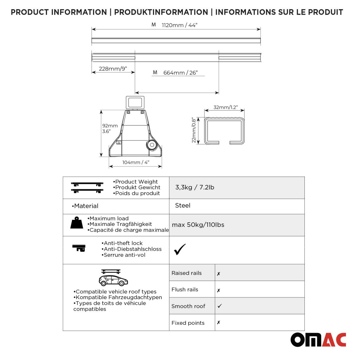 Fiat 500 Roof Rack Cross Bars - Omac - Omega G - Black - '17-'19