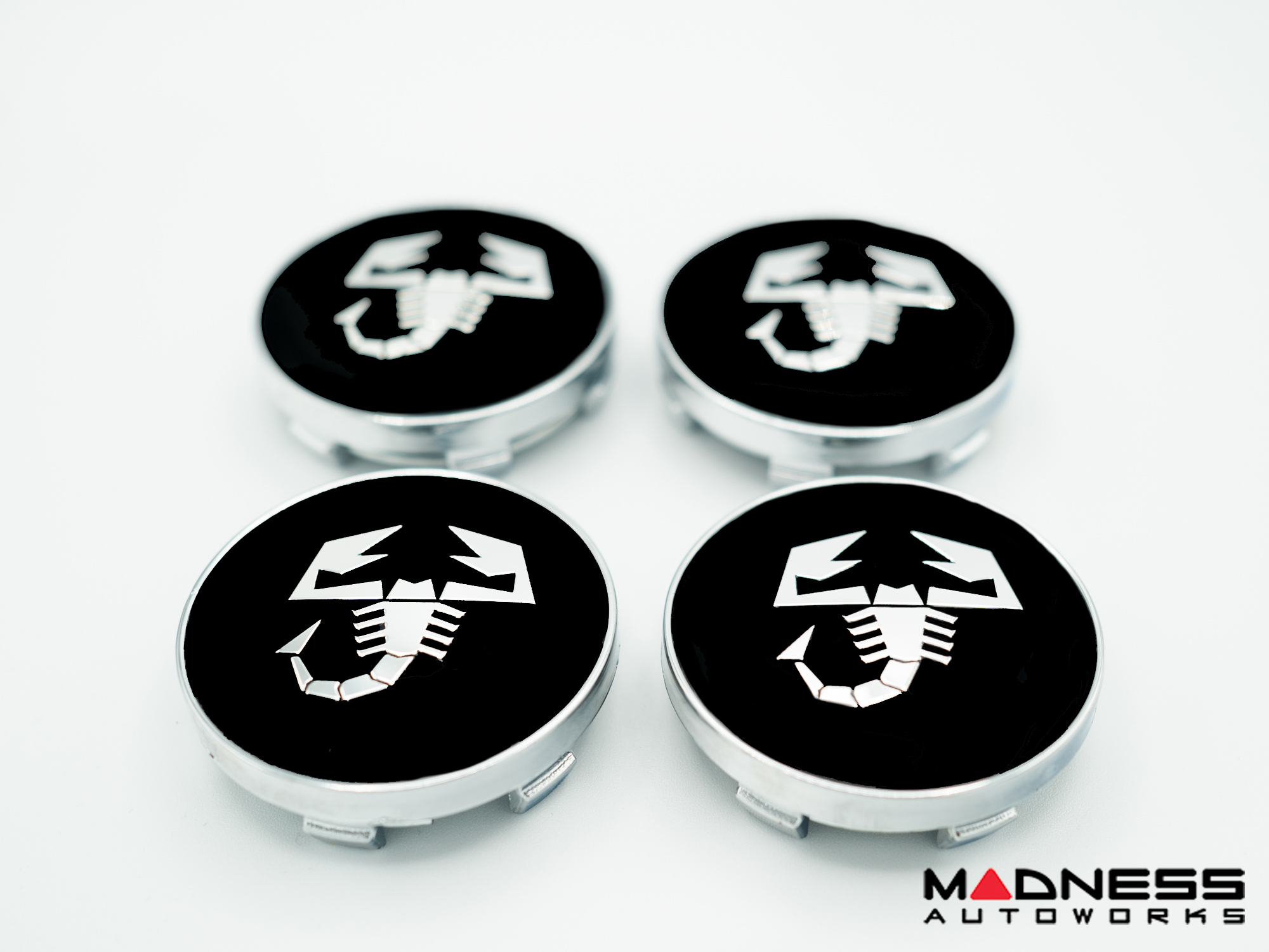 Center Wheel Caps - Black w/ Silver ABARTH Scorpion - 60mm