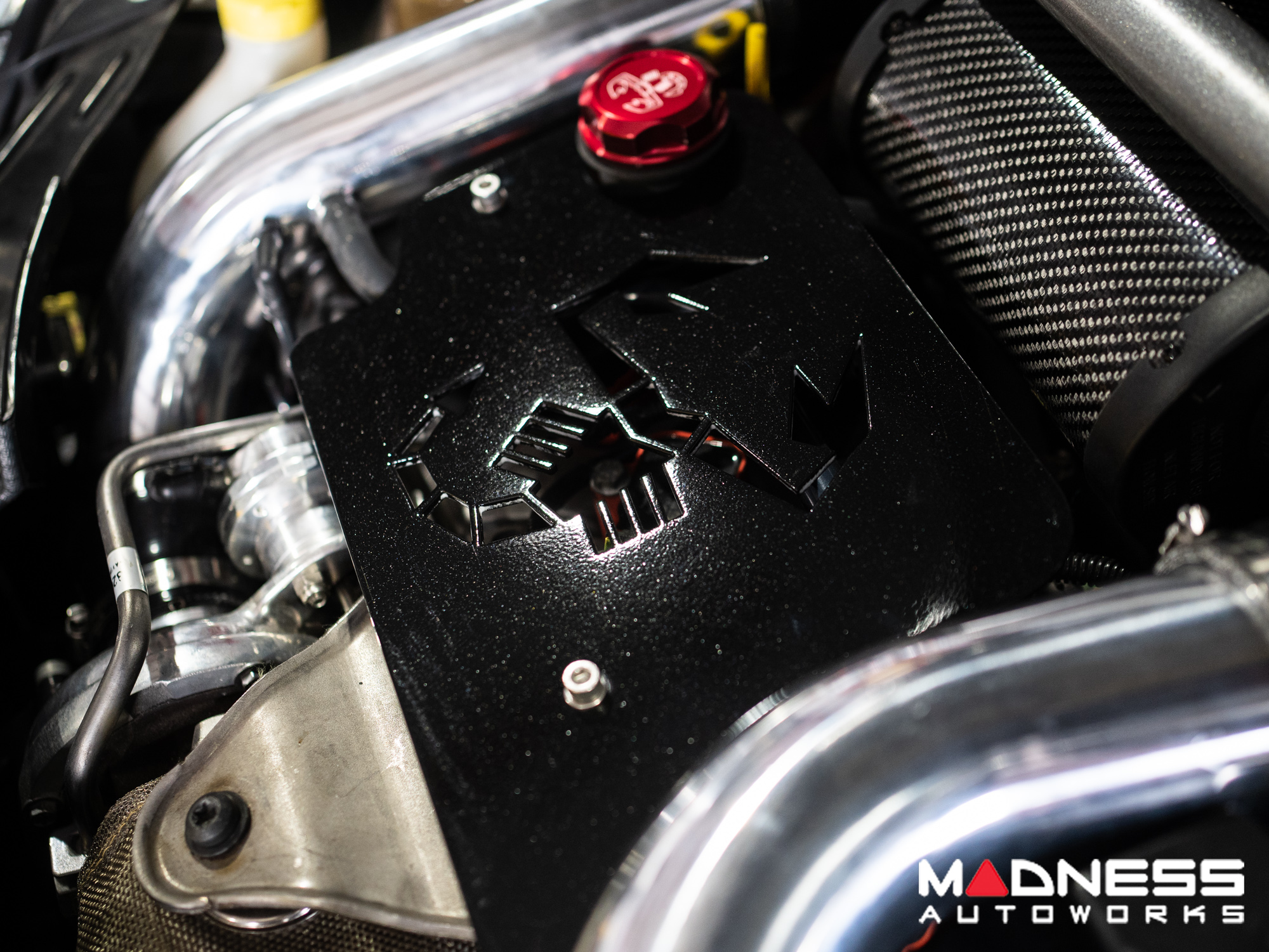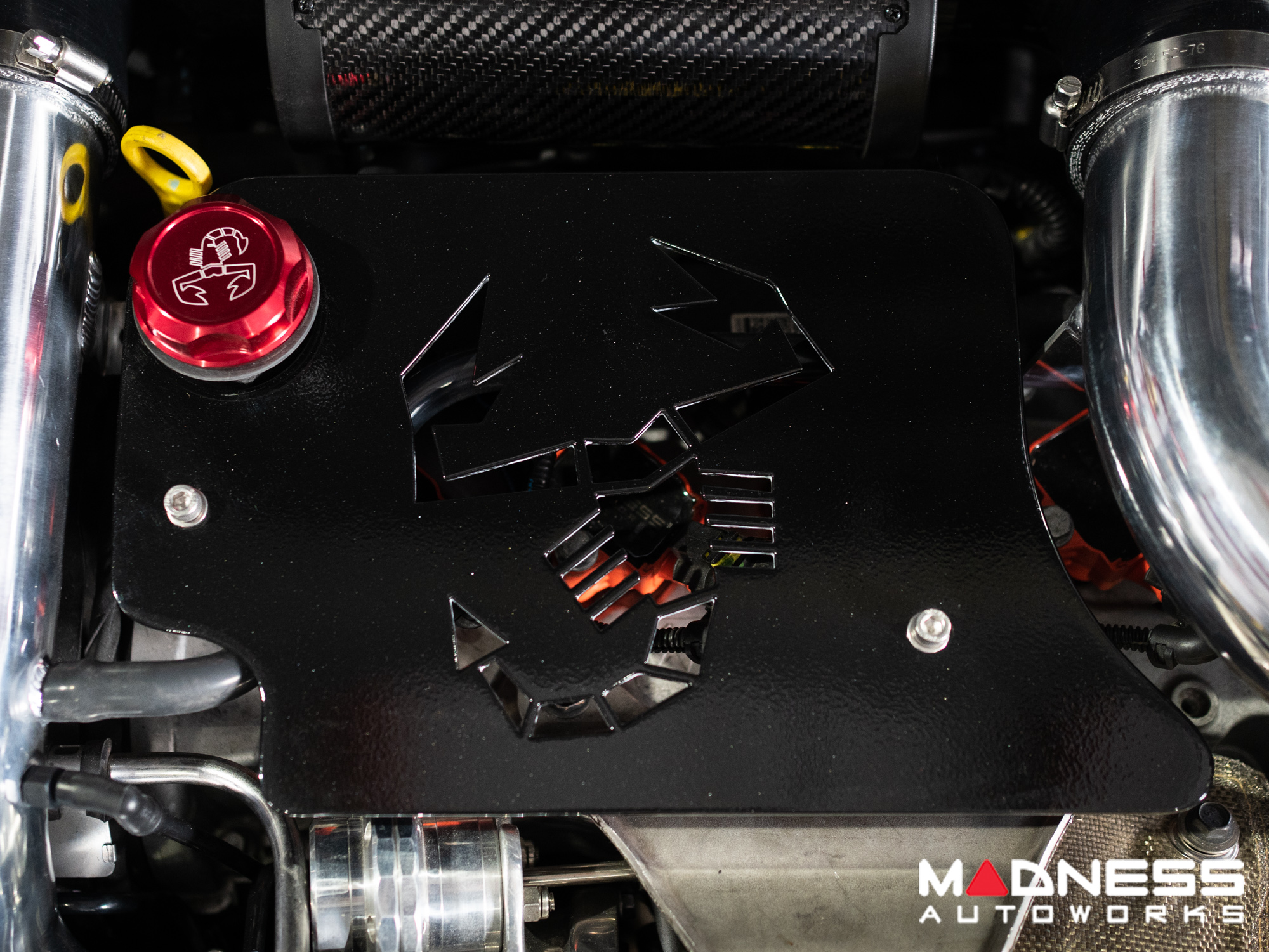 The Engine Cover is included in this set. It is specifically designed to fit with the MAXFlow intake. Constructed from 3mm Powder Coated Aluminum, it features a Scorpion Design cut-out in the center.
