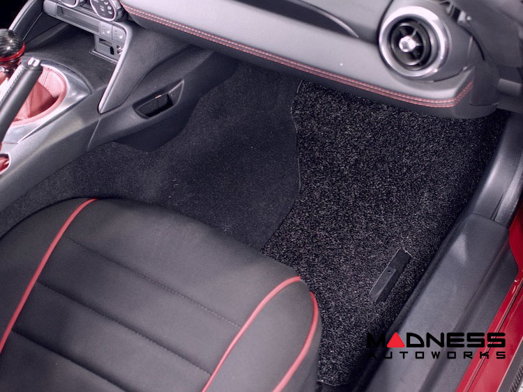 The mats feature a non-slip backing material with incorporated rubber studs that provide a strong grip. Each mat is precisely cut for an exact fit for the FIAT 124 Spider.