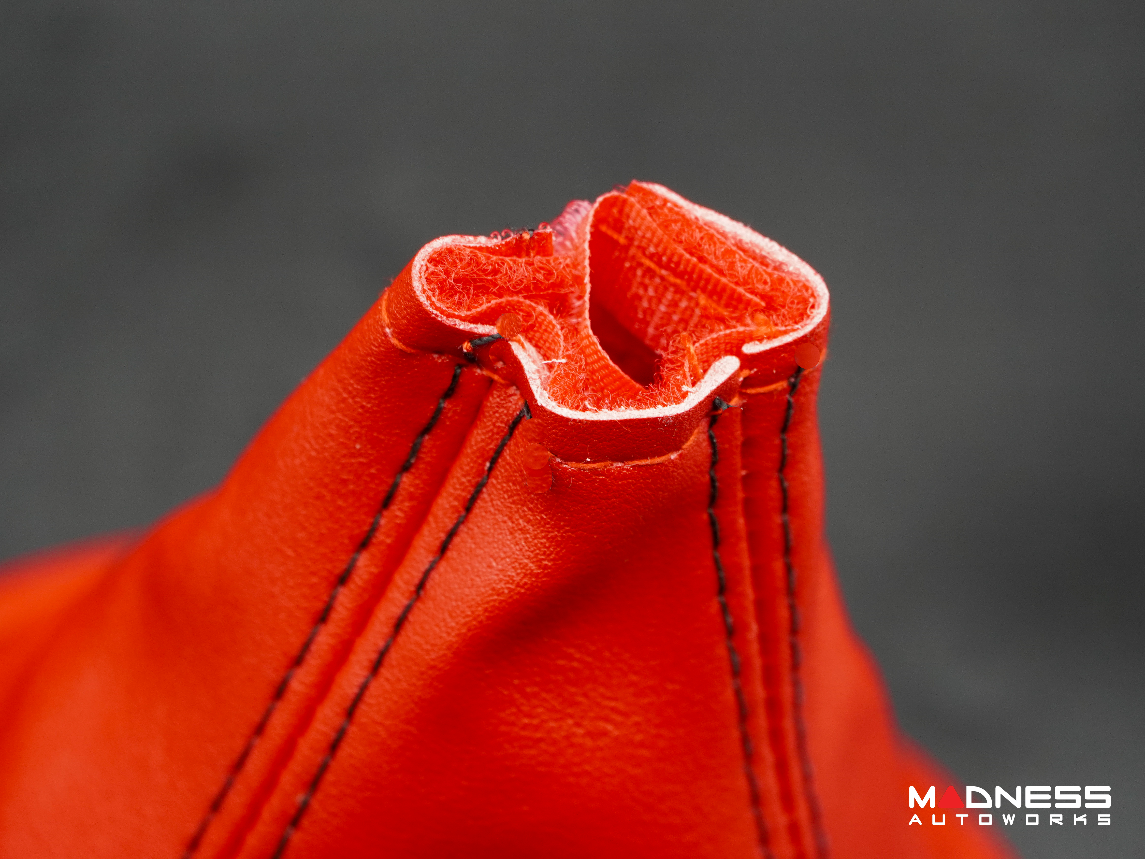 FIAT 500 Gear Shift Boot + Retaining Ring Set- Red EcoLeather w/ Black Stitching + ABARTH/ Scorpion Logos