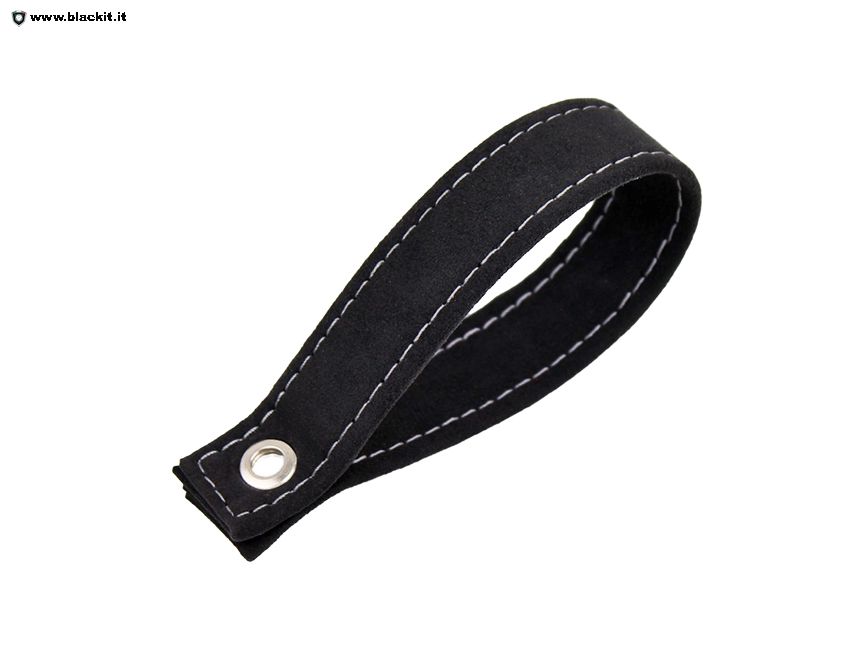 FIAT 500 Trunk Handle / Pull Strap - Black Italy - Black Alcantara w/ White Stitch