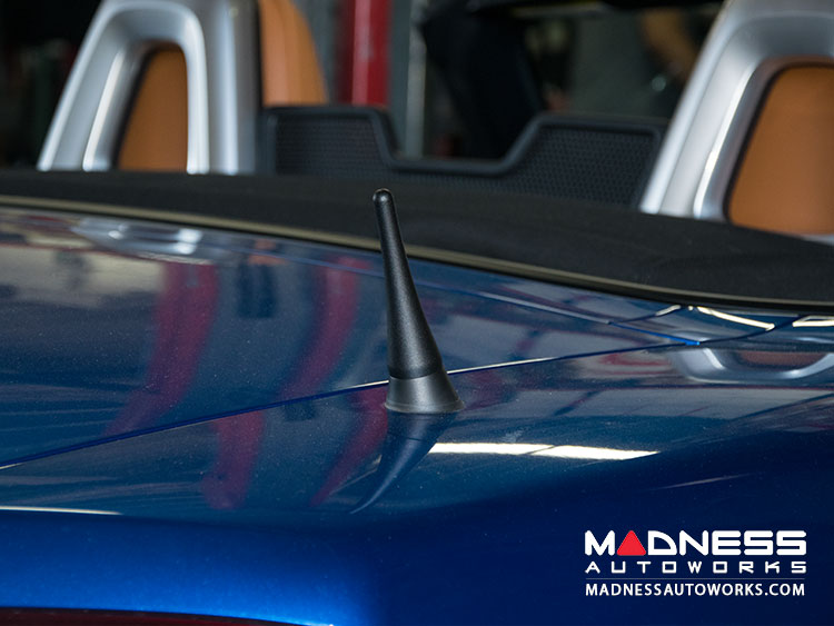 The FIAT 124 Original Stubby Antenna is the ideal replacement antenna for your FIAT, providing improved reception without compromising on style. Specifically designed for 124 Spiders from 2017-2020, this black antenna is the perfect way to upgrade your vehicle's appearance.
