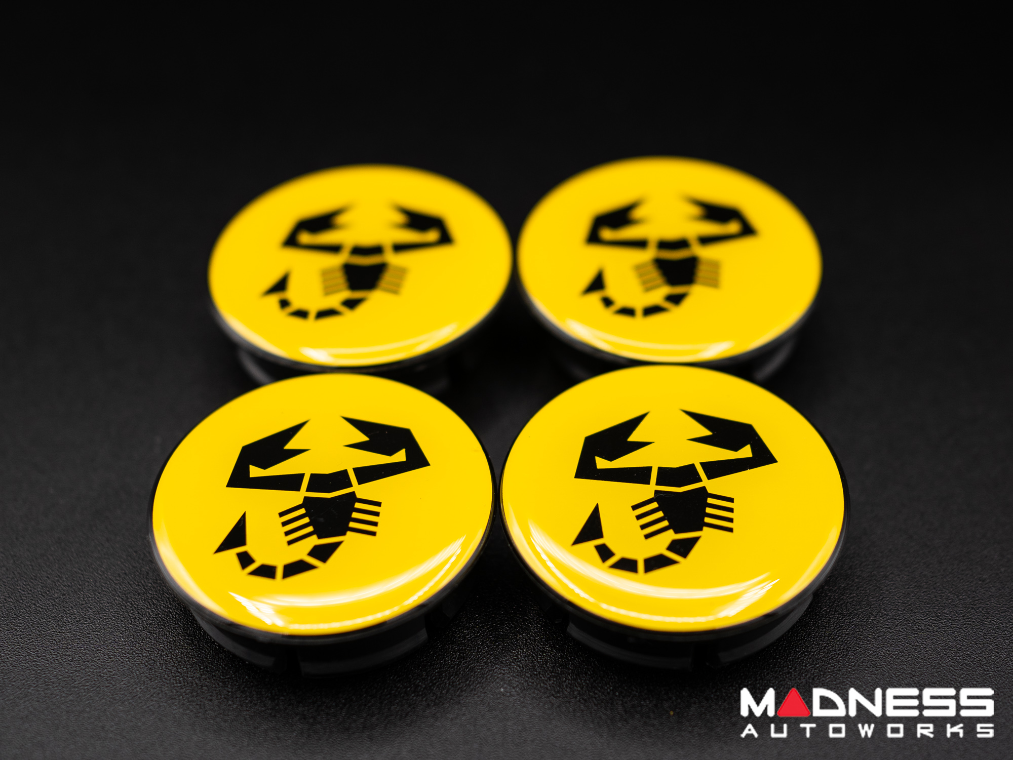 FIAT 500 Center Caps - Yellow with Black Scorpion