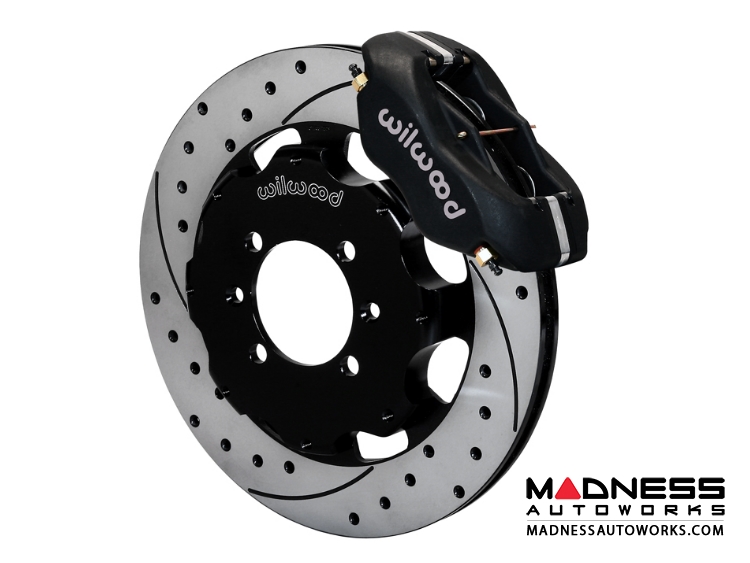 FIAT 124 Spider Brake Conversion Kit - Front - Wilwood - Dynalite 4 Piston - Black Calipers / SRP Drilled + Slotted Rotors
