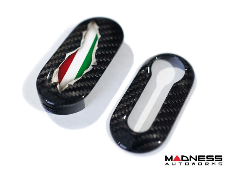 FIAT 500 Key Fob Cover - Carbon Fiber - Italian Flag Exposed