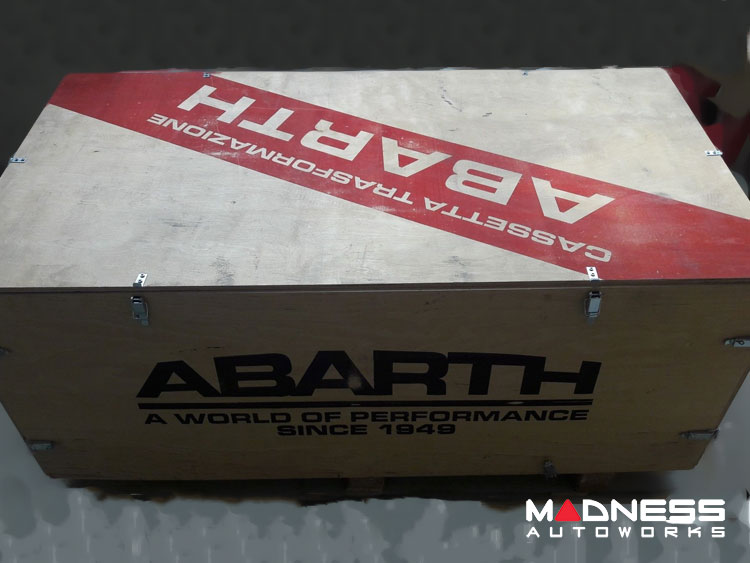 This is the genuine European ABARTH Crate that came as a part of a Tributo Ferrari/ ABARTH Performance Crate Package. These crates make perfect pieces to use as Garage Furniture and over the years we have had a number of fellow enthusiasts/ collectors that have asked for these crates for their personal use. Now we have a small amount of these and once they are sold, they are gone!