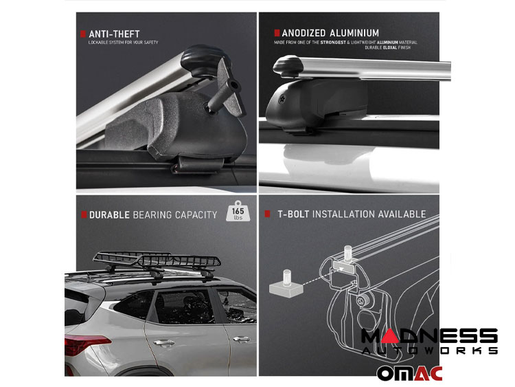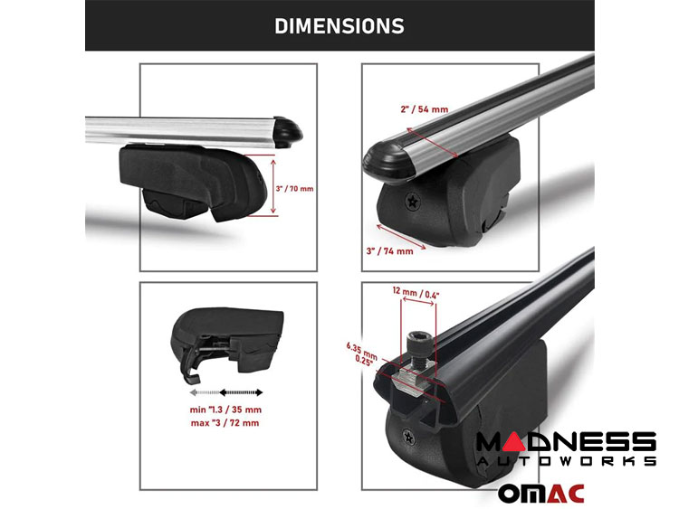 These Cross Bars are designed specifically for the FIAT 500X. This version is designed for models that came with the optional factory roof rails. .