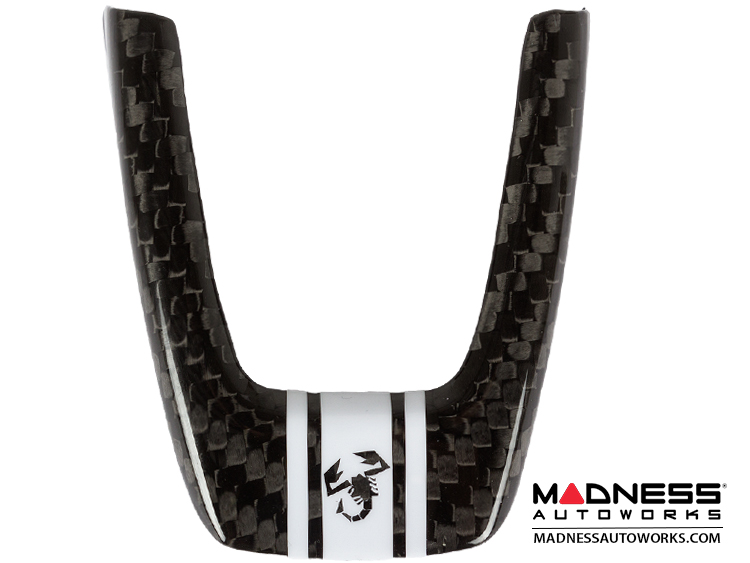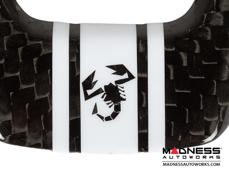 FIAT 500 Steering Wheel Trim - 3 piece set - Carbon Fiber - White Racing Stripe w/ Scorpion