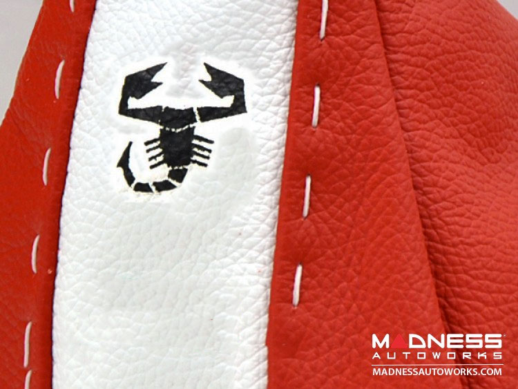 FIAT 500 Gear Shift Boot - Black Italy - Red & White Leather - Tuxedo w/ Scorpion Logo