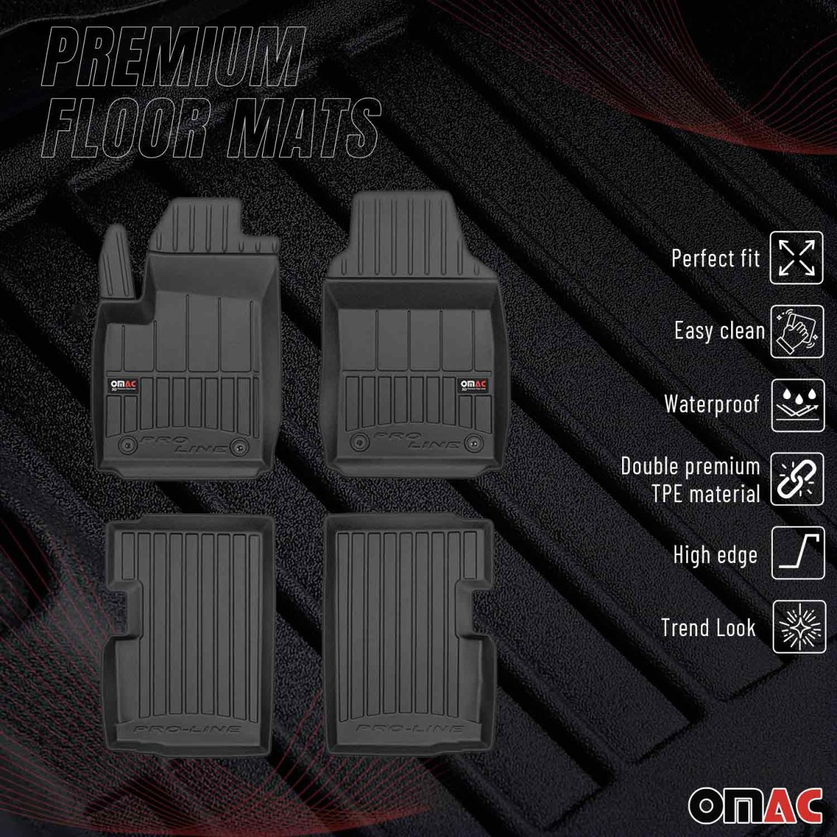 FIAT 500C Floor Mat - Omac - Premium TPE - Black - '09-'19