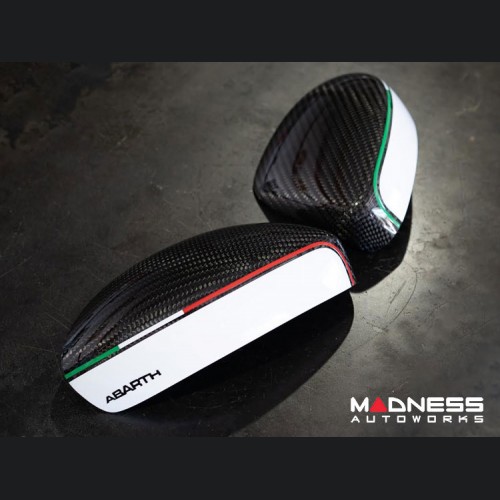 FIAT 124 Mirror Covers - Carbon Fiber White w/ ABARTH + Italian Theme