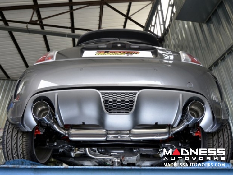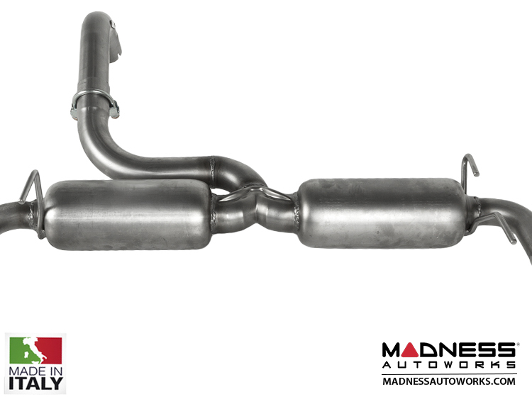 This Raggazon Evo Line Exhaust System for the FIAT 500 ABARTH will improve performance over the more restrictive stock system and give a great sound too. With the Resonators built into the center and rear sections of the System the exhaust note is slightly more subdued then stock for a more refined sound.